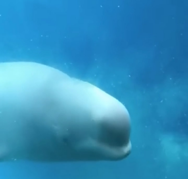 그런데 가끔 이 벨루가들은 이상한 행동을 합니다.