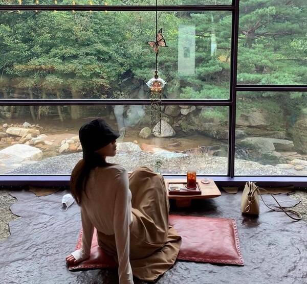 카페 다우리는 사장님이 3년간 손수 건축한 숲속 카페로 이국적인 외관과 통창으로 계곡을 만나볼 수 있는 매력적인 카페인데요. 카페 창밖을 바라만 봐도 힐링이 되는 보기만 해도 시원해지는 풍경이 아름다워 넋을 잃게 만듭니다.