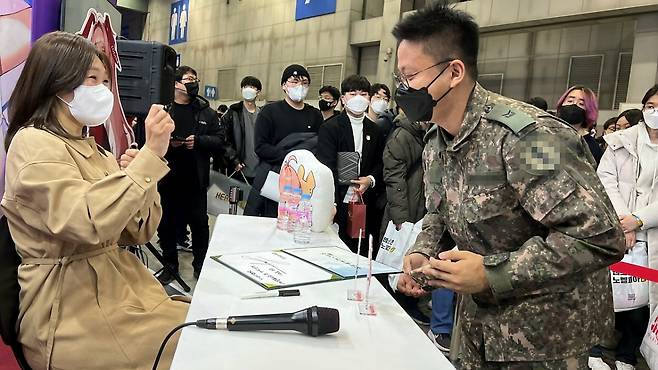 한편, 현장에서는 '러브인 로그인'의 체험판 시연 외에도 히로인 '박다혜'의 목소리를 담당한 성우 장미의 사인회가 개최되기도 했습니다. 사전 신청 유저 50명, 현장에서 게임을 선착순으로 구입한 50명을 대상으로 진행됐는데, '러브인 로그인'에 대한 팬들의 관심이 느껴졌습니다.