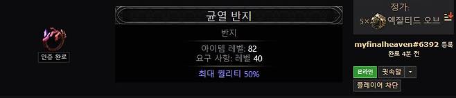 아이템 레벨 82 이상, 10엑~20엑 이상