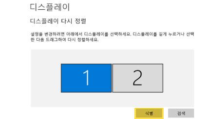 바탕화면을 오른쪽 클릭 후 디스플레이 설정에 들어가 식별 버튼을 클릭하면 모니터 화면에 숫자가 뜹니다.