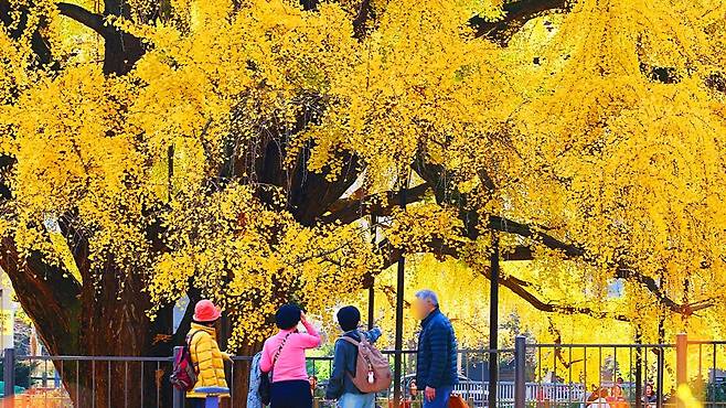 11월 초, 장수동은행나무는 단풍 절정의 마지막 구간에 접어들었습니다.