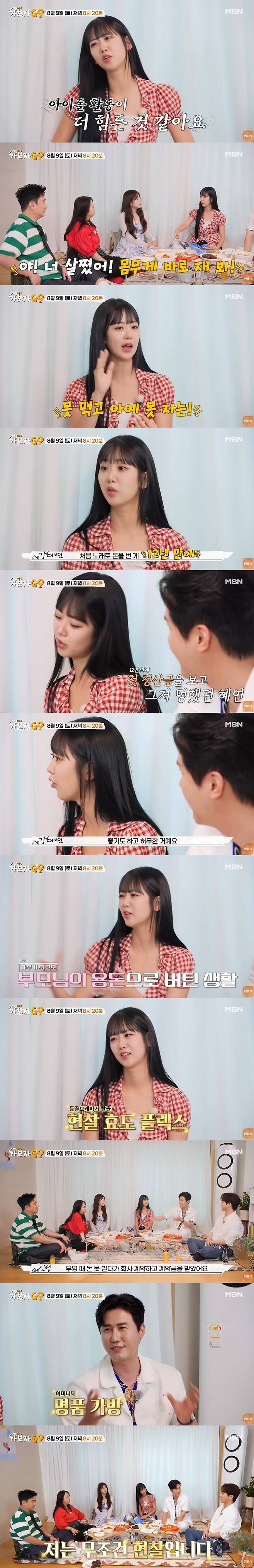 9일 MBN 측은 "아이돌 활동 12년만의 첫 정산금 받았었던 트로트 가수 강혜연"이라면서 '가보자GO' 선공개 영상을 공개했다.