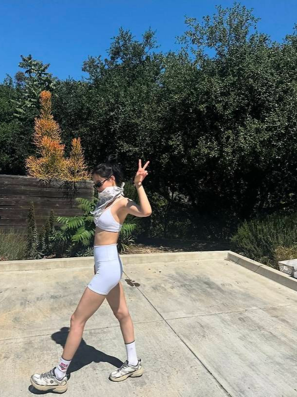 심플하지만 강렬한 이 룩은 탄탄한 복근과 힙라인을 부각하며, ‘운동이 패션’ 임을 증명했습니다.