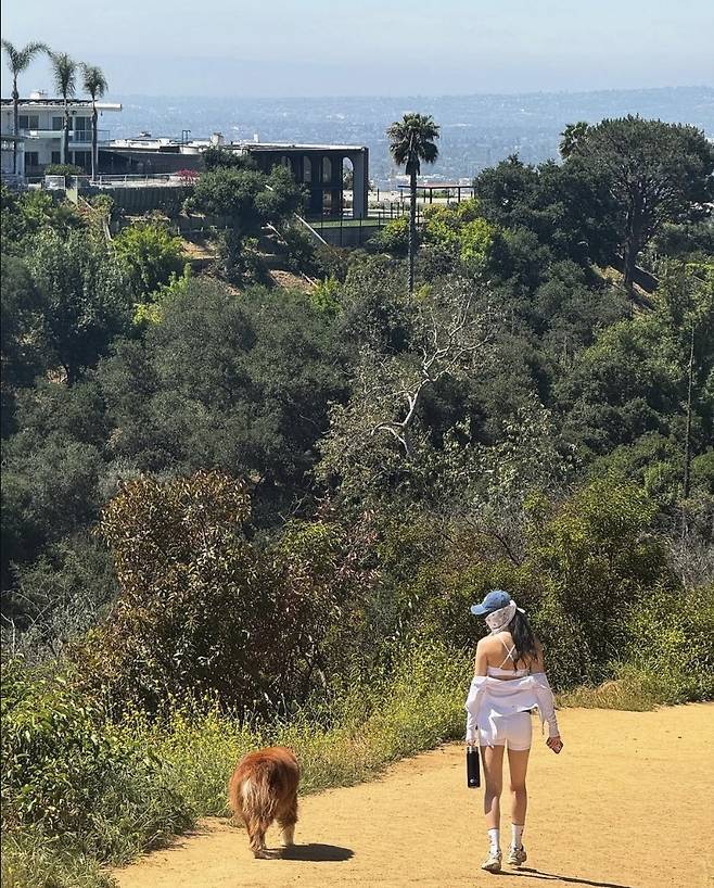 개와 함께한 뒷모습마저 그림 같았고, 속살이 드러나는 브라톱 차림의 마지막 컷에서는 감탄이 절로 나올 정도의 운동 루틴 성과를 보여줬습니다.