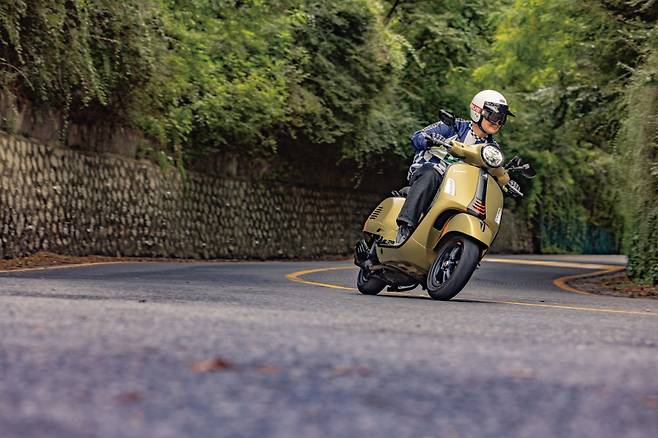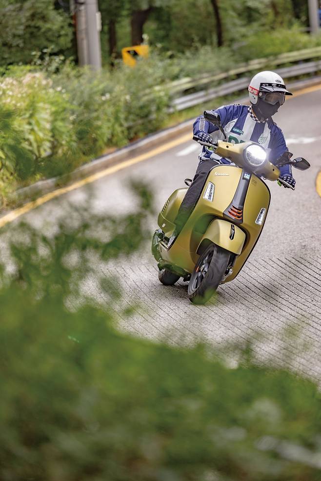 솔직히 베스파를 논하면서 라이딩 재미를 따진 적이 없다. 하지만, 새로운 GTS는 라이딩 재미가 한껏 상승했다. 프런트의 싱글 사이드 포크가 더 많은 피봇과 지지대를 적용하여 더욱 안정적인 구조로 개선됐기 때문이다. 과거에는 두 개의 피봇점으로 연결되어 제동 시 캐스트 각이 변경되며 이질적인 핸들링을 전달했는데 신형 모델의 경우, 거의 모든 순간 일정한 성능을 발휘한다. 덕분에 트레일 브레이킹이나 과격한 주행에도 자신감이 있고 고르지 않은 노면의 요철 처리도 부담 없다. 새로운 브레이크 캘리퍼와 장착 구조도 아주 마음에 든다. 순간 제동력을 넘어 최대 제동 성능까지 모두 개선되었다. 여기에 뛰어난 연비는 덤이다. 50km/h 항속 주행 시 45km/ℓ, 60km/h 항속 주행 시 40km/ℓ를 발휘한다. 물론, 스로틀을 계속 꺾어가며 달리면 30km/ℓ 수준을 마크했다.