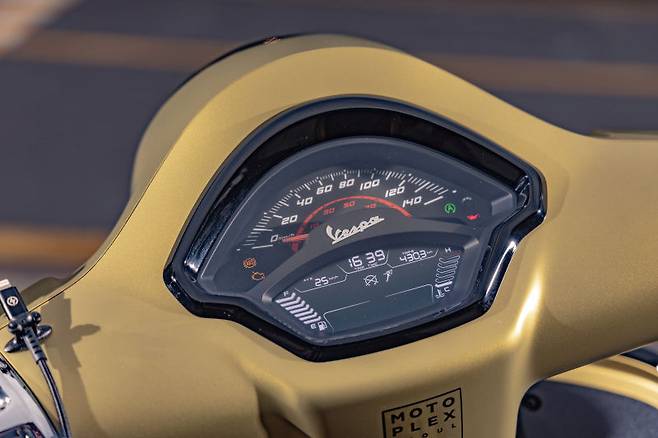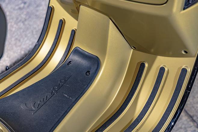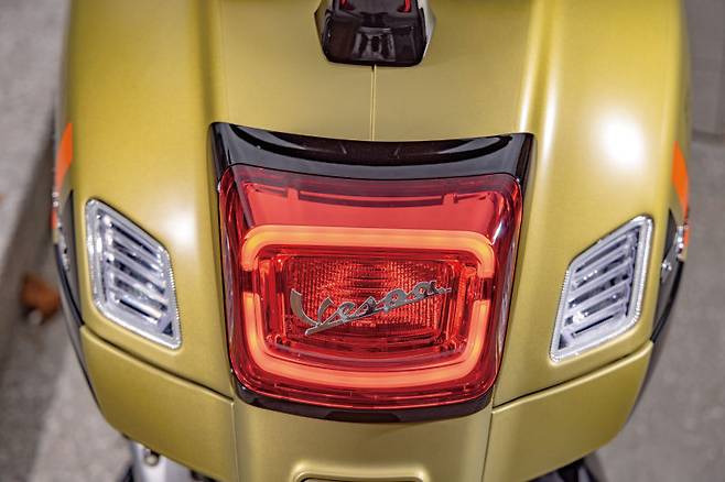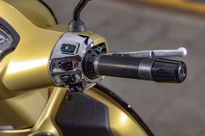 아날로그와 디지털이 결합된 계기반은 오랜 노하우가 느껴지며 주행 속도를 비롯하여 다양한 정보를 쉽게 알아볼 수 있다. 핸들 바 좌우의 스위치 뭉치 파츠는 크롬 컬러로 배치되어 과거 베스파의 기어 레버를 연상하게 만든다. 소소한 변화 같지만 실제로는 ‘신형’ 모델임을 한 번에 알 수 있는 요소다. 이 밖에도 차체, 휠, 시트, 배기 머플러 커버 등이 변경되었다.