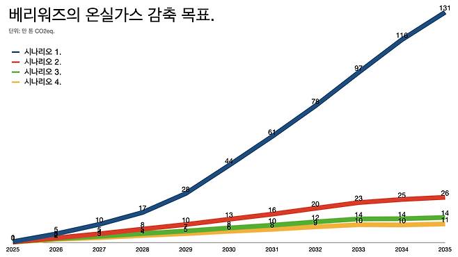 베리워즈는 1차로 68만 톤의 감축 실적을 인정받았는데 2035년까지 최대 1100만 톤 규모로 늘어날 거라고 보고 있다.