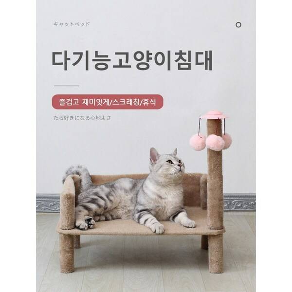 이 제품은 침대로도 쓸 수 있는 고양이 소파예요. 내구성이 좋은 원목인데다, 침구 모두 분리세탁이 가능하다고 합니다.