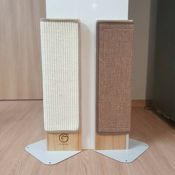 이 제품은 긁힘에 강한 매트가 깔려있어요. 그래서 고양이가 발톱을 갈거나 쉬기에 좋답니다. 다만, 기둥에 스크래쳐가 따로 없어 삼줄을 사서 둘러주면 된답니다.