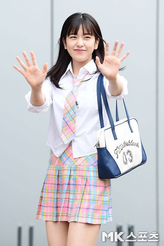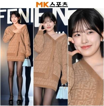 이날 안유진은 가을 분위기 물씬 나는 클래식한 니트 소재의 가디건과 초미니룩을 완벽하게 소화해냈습니다.
