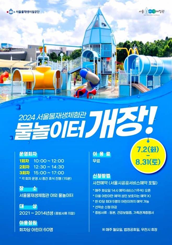서울물재생시설공단은 여름을 맞아 8월 말까지 ‘서울물재생체험관’ 내 어린이 물놀이터를 운영한다고 밝혔다.