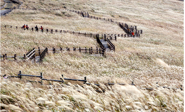 ▶ 억새: 9~11월 억새가 평원을 뒤덮으며 5만 평 억새 군락지 형성