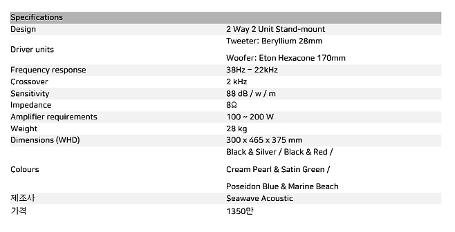 정보량과 해상력이 우수한 것은 분명하다. 그런데 아마도 저음은 가벼우면서 중고음의 이탈력은 시원스럽게 뻗어주는 음과 비교하면 선명도는 저음이 가벼우면서 중고음이 뻗어주는 스타일의 음이 더 선명하게 느껴질 수는 있다. 그렇지만, 모든 대역에 꽉 찬 정보량과 함께, 음악적인 품위나 격조, 깊이감 등에서는 북쉘프 스피커치고 씨웨이브 스피커보다 더 우수한 스피커를 찾기가 어려울 것이다.