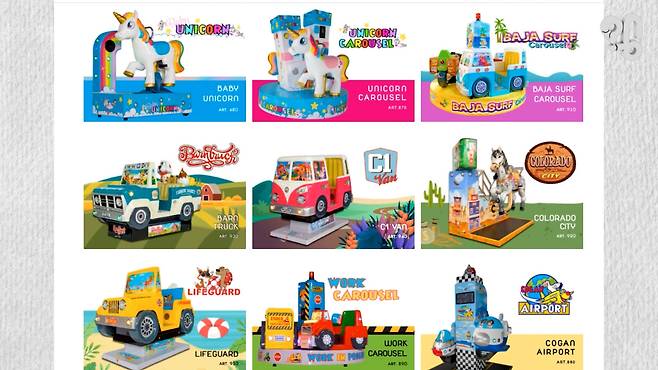특히 이탈리아 제작사들이 강한 건 디스코팡팡 같은 중대형 규모 놀이기구라고. 또 동전 넣고 타는 이런 쪼그만 놀이기구도 많이 만든다.