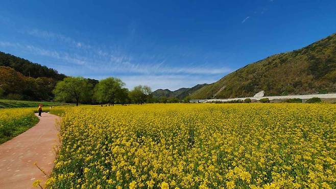 충북 옥천군 동이면에 위치한 옥천 금강 수변 친수공원은 봄이면 유채꽃이 만발해 장관을 이루는 지역 대표 꽃 명소입니다.