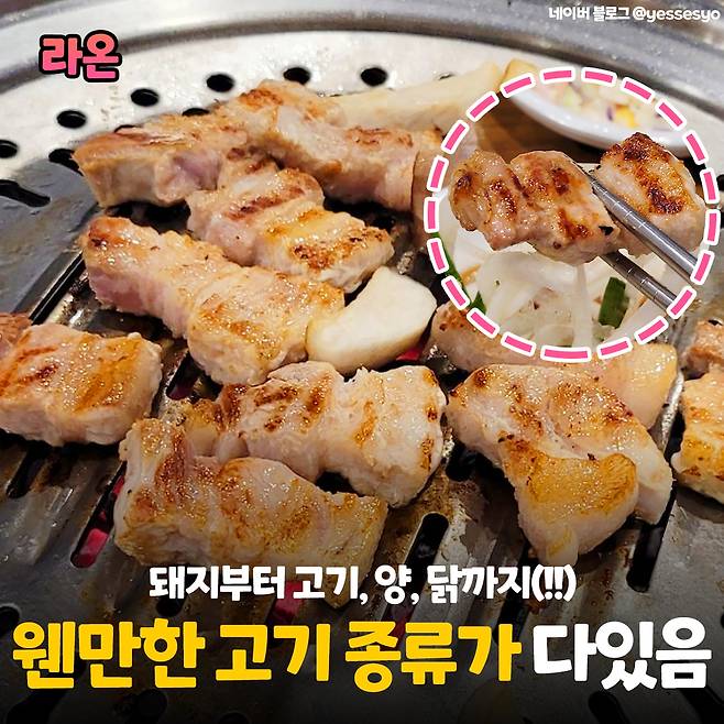 이곳의 장점은 각기 다른 종류의 고기를 한곳에서 먹을 수 있다는 건데요. 소, 돼지는 물론 닭, 양고기까지 모두 가능쓰! 그도 그럴 게 굳이 따로 시키지 않아도 세트 메뉴도 구성이 잘 되어 있어 취향에 따라 픽할 수 있다구요. (꿀꺽)