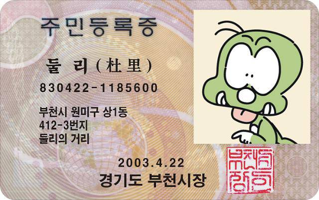# 주민등록증 보유한 대한민국 국민 '둘리'