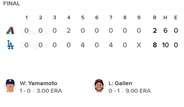 승리의 발판은 선발 야마모토의 견고한 투구였다. 야마모토는 6이닝 동안 5피 안타 6 탈삼진 2 실점(자책)으로 퀄리티스타트를 기록하며 에이스의 임무를 완수했다. 4회 초 제랄도 퍼돔에게 허용한 2점 홈런이 유일한 실점이었을 뿐, 사사구를 단 하나도 내주지 않는 정교한 제구로 애리조나 타선을 요리했다. AP통신 등 주요 외신은 "야마모토가 투구 수 제한 상황에서도 효율적인 투구로 팀 승리를 이끌었다"며 그의 안정적인 운영 능력에 주목했다.