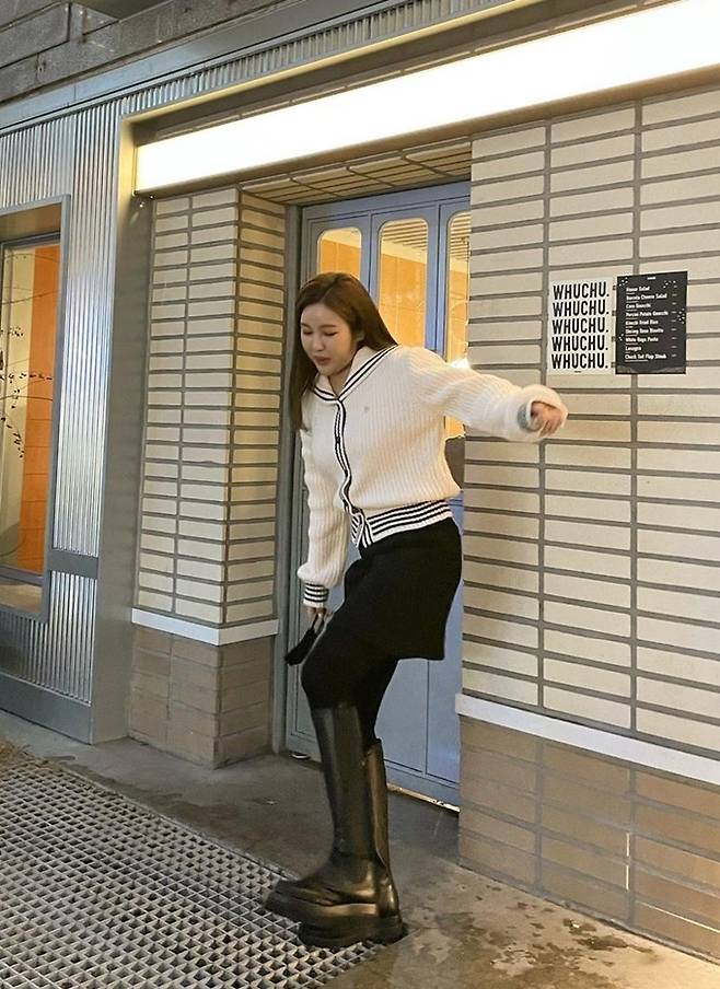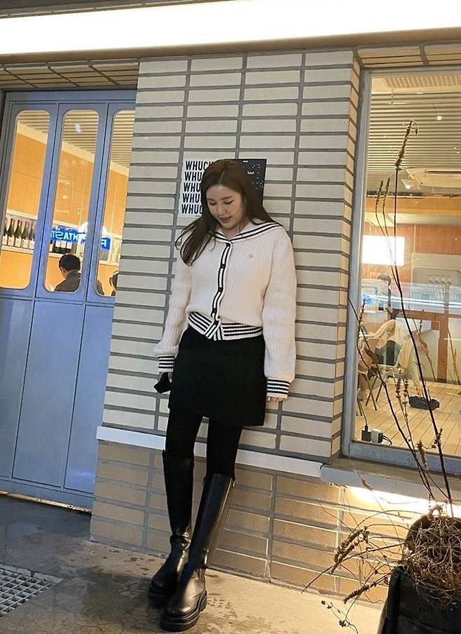 공개한 사진에서 송가인은 각선미가 드러난 미니 스커트에 스타킹과 블랙 롱부츠를 매치하고 화이트 카디건을 편안하면서도 캐주얼한 스타일을 선보였다.