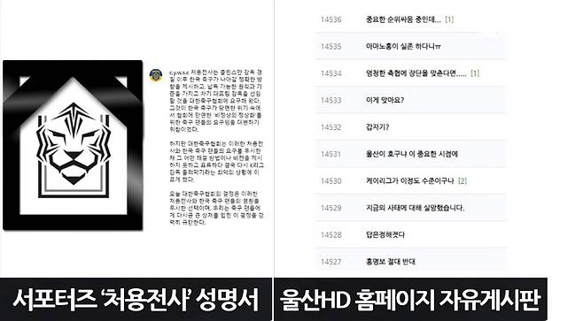 ◇ 김현정> 그렇군요. 울산팀 홈페이지는 물론이고 팬 커뮤니티에도 글들이 상당히 많이 올라왔다면서요.