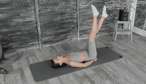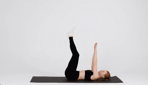 매트에 누워 복부에 힘을 주고 양다리를 들어 무릎이 90도가 되도록 구부립니다. 허리가 바닥에서 뜨지 않도록 주의하면서 오른쪽 다리를 앞으로 곧게 뻗었다가 원위치로 돌아옵니다. 이어서 왼쪽 다리를 같은 방식으로 뻗었다가 돌아오며 좌우 번갈아 반복합니다.