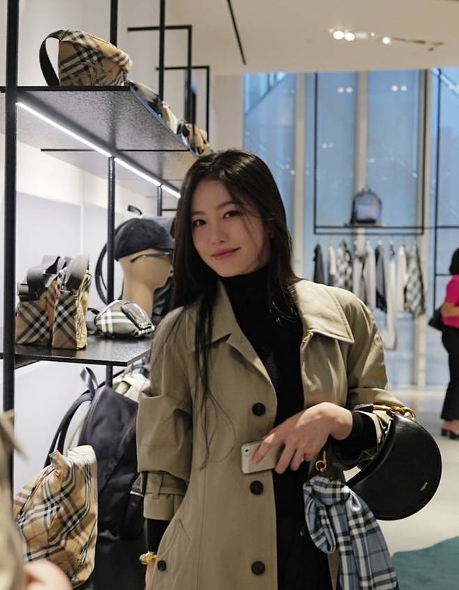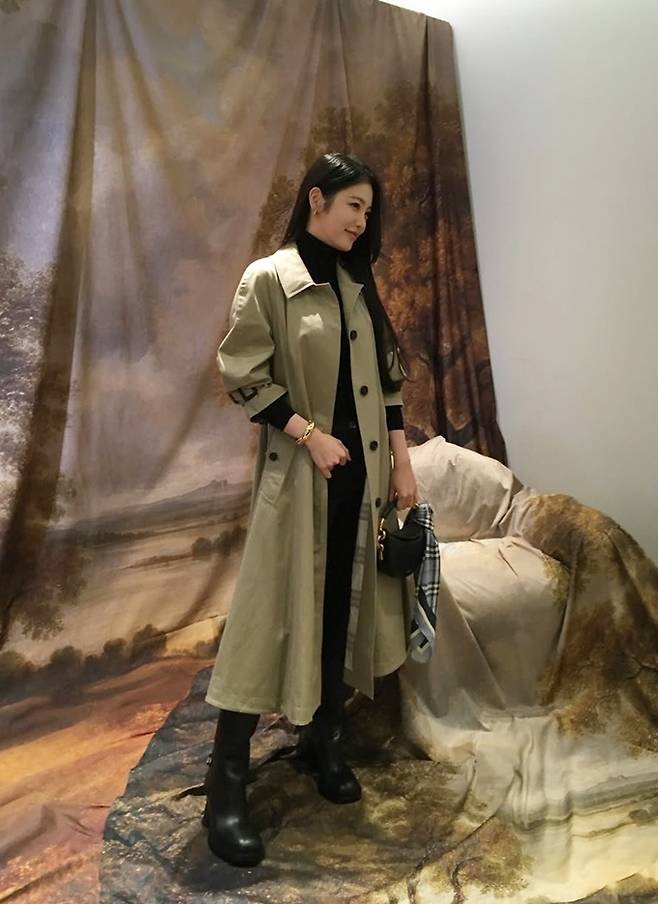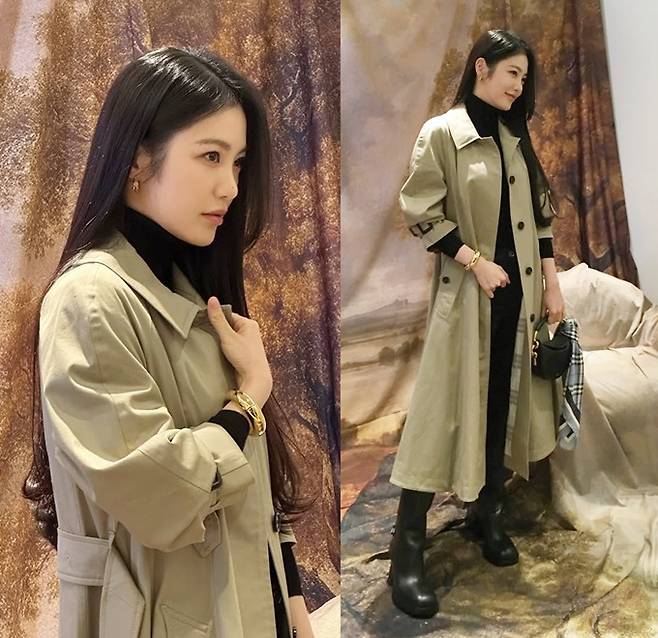 공개한 사진에서 신예은은 카키 컬러의 트렌치코트에 이너 블랙 터틀넥을 입고 블랙 롱 부츠를 매치한 스타일로 멋스러우면서도 세련된 가을룩을 선보였다.