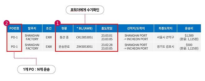 게다가 수입은 판매자로부터 대량의 상품을 구입하다 보니, 운송이 한 번에 이뤄지지 않는 경우가 많다. 납기일정을 맞추기 위해 선적을 나누는 경우도 생긴다. 하나의 PO(발주서)에 여러 건의 운송장이 매칭되는 경우도 발생한다. 그만큼 관리가 복잡하다. 내가 주문한 상품 중 얼마만큼이 선적됐고 얼마만큼이 아직 선적되지 않았는지 체크하는 것도 일이다.