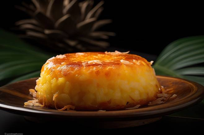 팬케이크 반죽 비슷하게 빵 반죽을 만들어 바나나 잎을 바닥에 깔아 놓고 반죽을 부어 화덕에 구워 만들어 냅니다. 은은한 코코넛 향이 식욕을 자극하는 디저트로 꼭 먹어보세요.