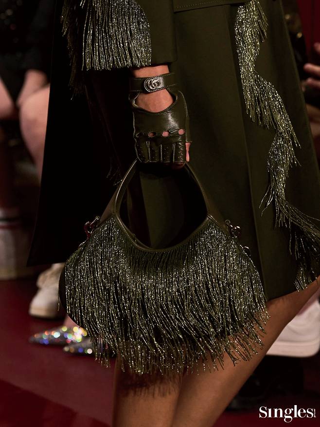 프린지 백의 가장 큰 장점은 별다른 액세서리가 필요 없다는 것. 단 하나만으로 존재감이 충분해 룩에 생기를 더하고 싶을 때 이만한 액세서리가 없다.