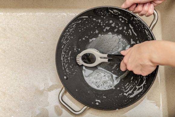 세척할 때도 마찬가지입니다. 철 수세미나 거친 수세미는 코팅을 빠르게 마모시키는 주범인데요. 부드러운 스펀지나 전용 수세미로 닦아주는 것이 좋습니다. 만약 음식이 눌어붙어 잘 지워지지 않는다면, 굵은 소금을 후라이팬에 뿌려 2~3분간 가열한 뒤 키친타월로 닦아내는 방식이 효과적입니다.