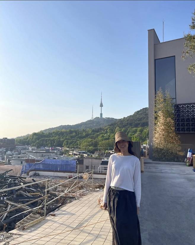 공효진은 서울 남산을 배경으로 청량하고 편안한 무드를 담은 데일리룩을 완성했습니다.