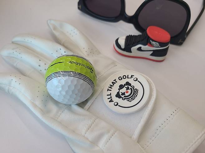 골프공 디자인은 대부분 거기서 거기라고 생각했는데, 막상 실물을 보니 생각보다 마음에 드네요. 캘러웨이 크롬 소프트가 처음 소개한 트루비스 디자인으로 골프공도 색상만 바꿀 게 아니라 디자인도 넣어서 기능을 추가할 수 있다고 시작한 후, 많은 골프 회사가 디자인을 추가했지요. 스릭슨 디바이드 투-컬러 공을 처음 볼 때처럼 약간 신기한 느낌이 들었습니다. 그러나 가까이 자세히 들여다보면 페인트가 약간 뭉친 듯 고르지 않게 보이기도 하는데 이것은 디지털 무늬를 넣어서 눈에 더 잘 띄기 위한 것이랍니다.