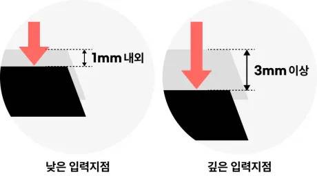입력 지점이 얕을수록 키를 얕게 눌러도 입력되기 때문에 손가락 힘이 덜 들고, 일명 '구름타법'이라는 손가락 끝으로만 타이핑하는 스킬을 사용(?)할 수 있습니다.