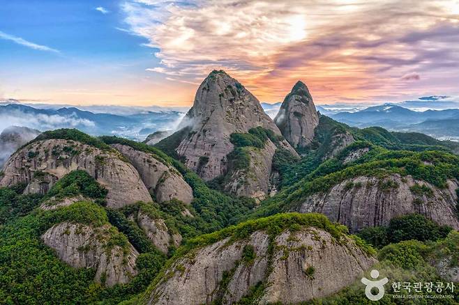 봄에는 안개 속 돛대봉, 여름엔 용의 뿔을 닮은 용각봉, 가을엔 단풍이 물든 마이봉, 겨울엔 붓끝 같은 문필봉. 이름만큼이나 매번 새로운 인상을 남깁니다.