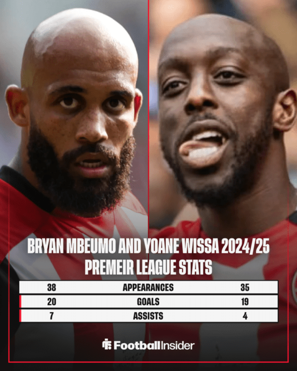 두 선수를 동시에 영입할 수 있다면 토트넘으로서는 반길 수밖에 없는 그림이다. 음뵈모는 2024/25시즌 공식전 38경기에서 20골 7도움을 기록했고, 위사 역시 35경기 19골 4도움으로 맹활약했다. 두 선수는 총 39골을 합작하며 브렌트포드의 공격을 이끌었다.