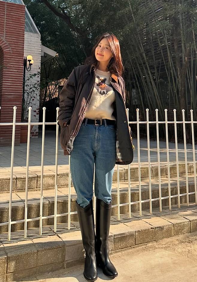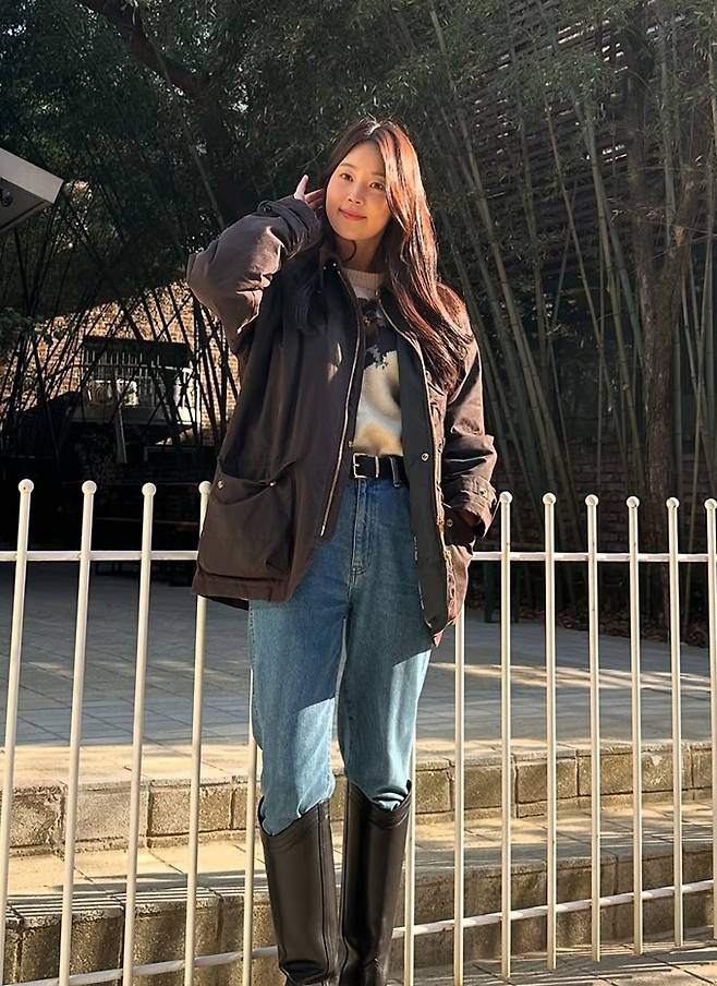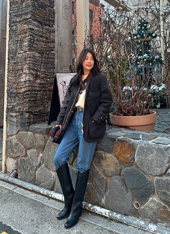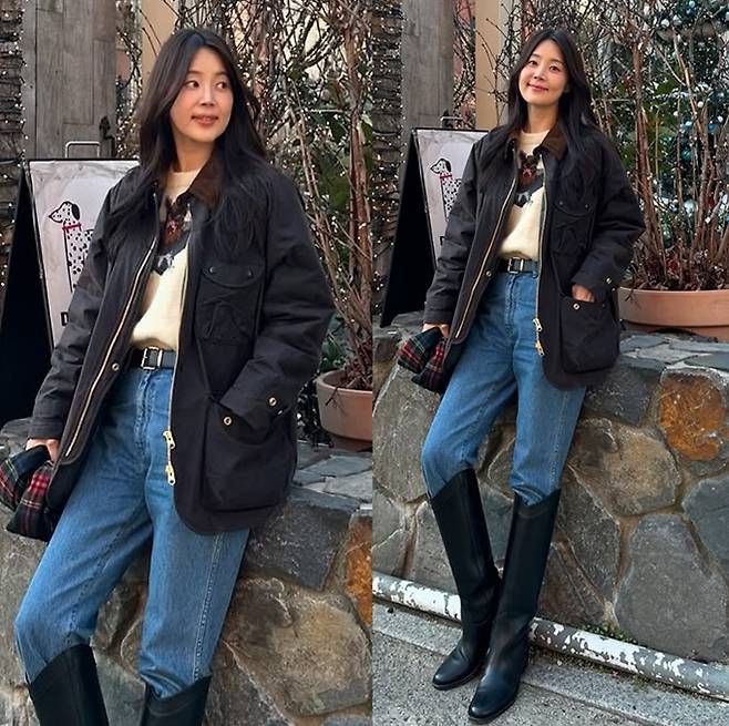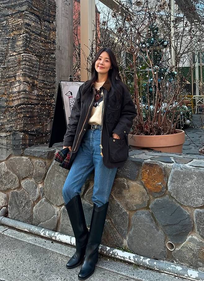 공개한 사진에서 한지혜는 데님 팬츠와 티셔츠에 블랙 바버 재킷을 걸치고 롱 부츠를 매치한 외출룩으로 매니시하면서도 멋스러운 댄디한 스타일을 선보였다.