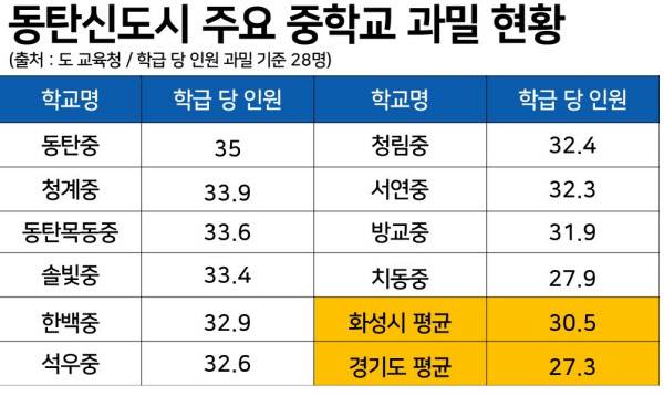 문제는 이로 인한 부작용이 서서히 속출한다는 점이다. ‘콩나물 학급’(학급당 인원 28명 이상)으로 불리는 과밀 학급이 대표적이다. 동탄에선 ‘과밀’이 아닌 학교를 찾기 어려울 정도로 아이들이 많다.