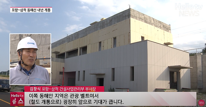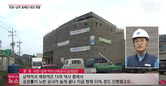 장호 포항~삼척 역사 신축공사 감리단장: 삼척역과 매원역은 13개 역사 중에서 공정률이 노반 공사가 늦게 끝나 지금 현재 55% 정도 진행됐고요. 그다음에 임원역과 원덕역은 지금 95% 이상 다 완료하고 포장까지 다 끝났습니다.