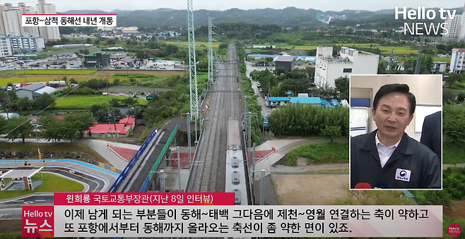 윈희룡 국토교통부장관(지난 8일 인터뷰): 이제 남게 되는 부분들이 동해~태백 그다음에 제천~영월 연결하는 축이 약하고 또 말씀하신 포항에서부터 동해까지 올라오는 축선이 좀 약한 면이 있죠. 그 지역을 산업이 됐든 관광이 됐든 미래의 수요를 어떻게 끌어올리면서 조금이라도 거기에 대해서 우리가 국가 자원을 투입할 수 있는 명분을 좀 만들어야 되겠다…