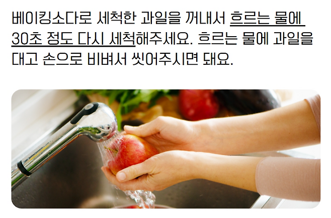 👉 식초나 베이킹소다 물에 5~10분 담근 후 흐르는 물에 여러 번 헹구세요.