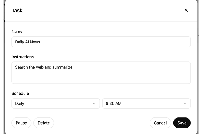 사용자들은 해당 기능을 통해 AI에게 특정 시간에 맞춰 작업을 수행하도록 지시할 수 있다. 예컨대 AI에게 매일 일정을 요약하거나 매주 월요일마다 블로그 게시물에 대한 아이디어를 생성하도록 요청할 수 있다.