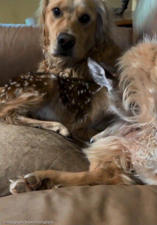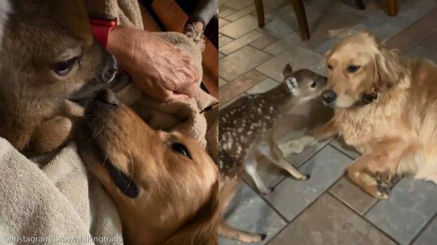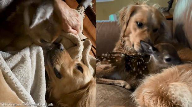 [노트펫] 한 골든리트리버가 새끼 사슴을 자신의 아기처럼 돌보는 감동적인 모습이 화제가 되고 있다.