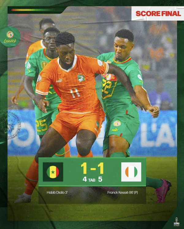 30일(한국시간) 코트디부아르 야무수크로의 스타드 찰스 코난 바니에서 '2023 아프리카 네이션스컵' 16강을 치른 세네갈이 코트디부아르와 1-1로 비긴 뒤 승부차기 끝에 4-5로 졌다. 지난 네이션스컵 우승국이었던 세네갈은 2연패 도전을 마감했다.