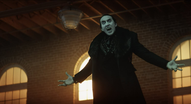 이와 반대로 자신의 심기를 건드리면 무엇이든 잡아먹겠다는 듯 이글거리는 눈빛의 니콜라스 케이지가 이목을 집중시킨다. 불멸의 꼰대 직장상사 ‘드라큘라’로 분한 니콜라스 케이지의 범상치 않은 아우라를 한껏 느낄 수 있다.