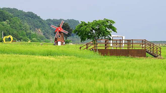 발 아래로는 초여름 바람에 출렁이는 청보리, 눈앞에는 감성 가득한 포토존들이 이어져 있어 걷는 것만으로도 힐링이 된다.