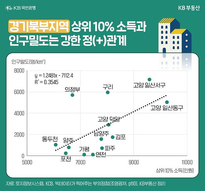 경기북부 상위10% 소득 지역의 인구밀도는?
