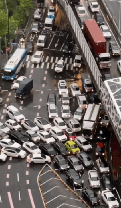 사라지는 차선: 1차선으로 직진하고 있었는데, 갑자기 그 차선이 '좌회전 전용' 차선으로 바뀌어 버리거나, 아예 사라져 버리는 경우가 비일비재합니다. 직진을 하기 위해서라도, 계속해서 차선을 바꿔야만 하는 황당한 상황이 벌어지죠.