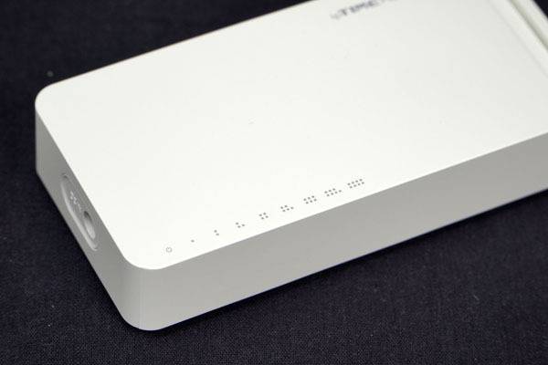 ipTIME 특유의 심플한 색상과 디자인을 가지고 있으며 상단에 보이는 LED로 전원과 8개의 LAN 포트 동작 상태를 쉽게 파악할 수 있다.