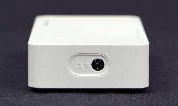 외부 전원 어댑터 연결 단자는 본체 크기도 줄이고 LAN 케이블 연결에 지장을 주지 않도록 측면에 만들었다. 전원 어댑터는 5V 1A의 5W 정격 출력으로 24시간 계속 사용해도 부담이 없다.